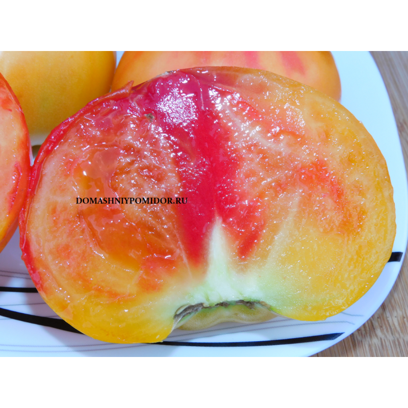 мякоть не переходит в оранжевую, цвета не смешиваются, вкуснейший сорт!