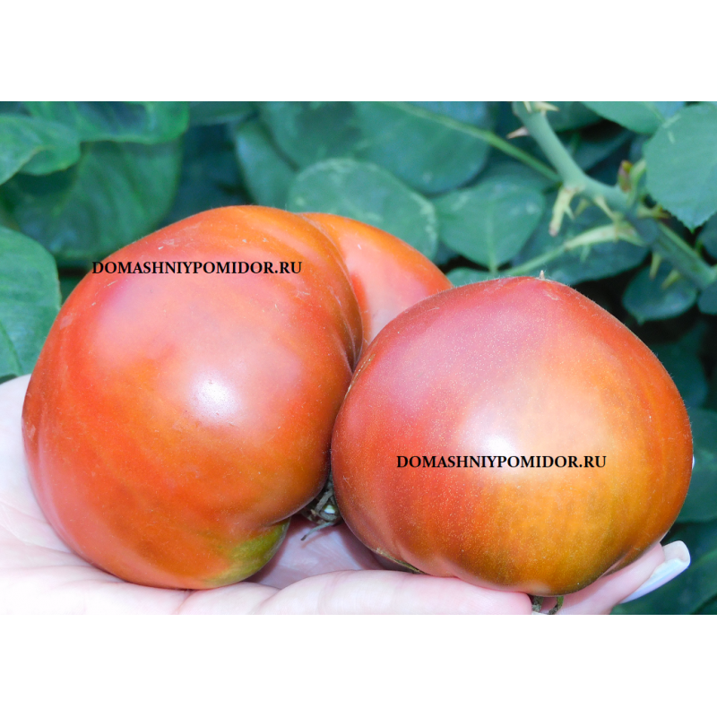 Среднеспелый, высокорослый, инд. сорт. Плоды в форме выровненного сердца, могут быть и сдвоенные сердца, шоколадного цвета, крупные массой пол кг., и более, мясистые, практически без семян с плотной сладкой мякотью, очень вкусные.