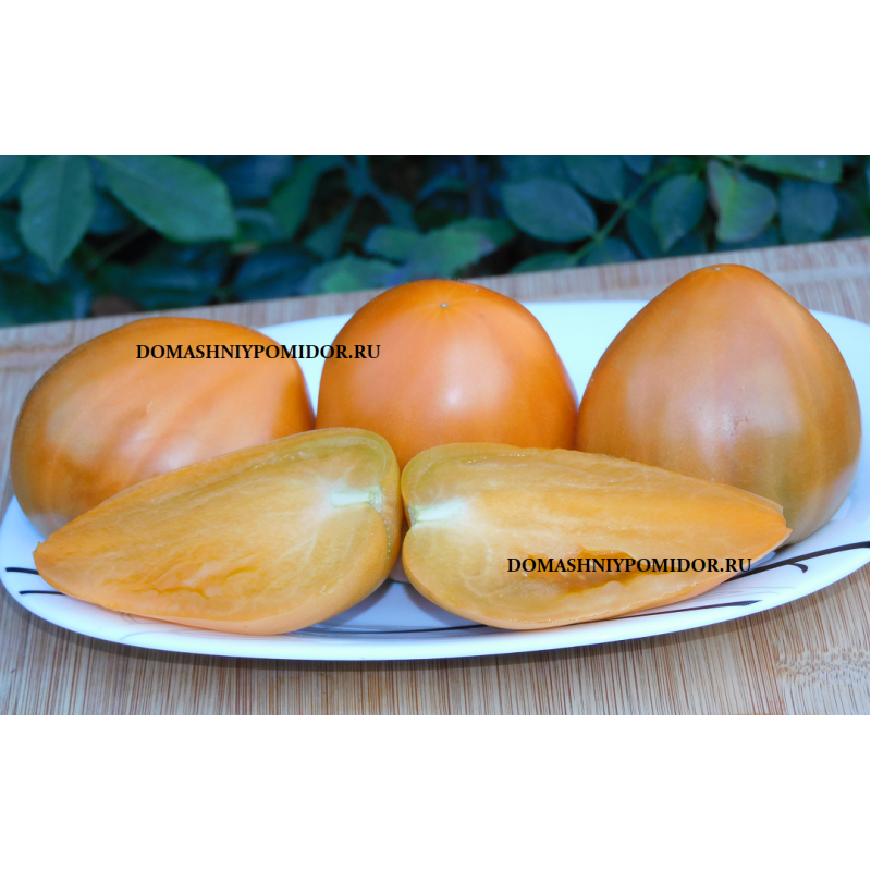 Среднеспелый, высокорослый, инд. сорт. Огромные, выровненные плоды в форме сердца, красивого цвета светящиеся золото с мясистой, малосемянной мякотью цвета охра, неописуемый, потрясающий вкус. Красота, вкус и хорошая лёжкость.